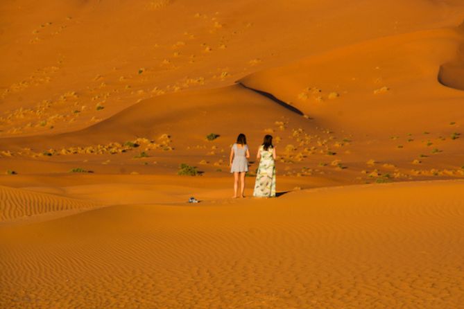 After breakfast, depart Fez toward the Middle Atlas Mountains. Stop in Imouzzer, then in the cedar forests near Azrou to see the centuries-old trees and playful Barbary monkeys. Continue to Ifrane, known as “Little Switzerland” for its Alpine architecture. Lunch in Midelt before heading south to Merzouga — the gateway to the Sahara. Upon arrival, mount your camel for a sunset ride across the dunes. Spend the night in a luxury desert camp, enjoy a traditional Berber dinner, music around the campfire and gaze at the star-filled sky. (Breakfast & dinner included.)