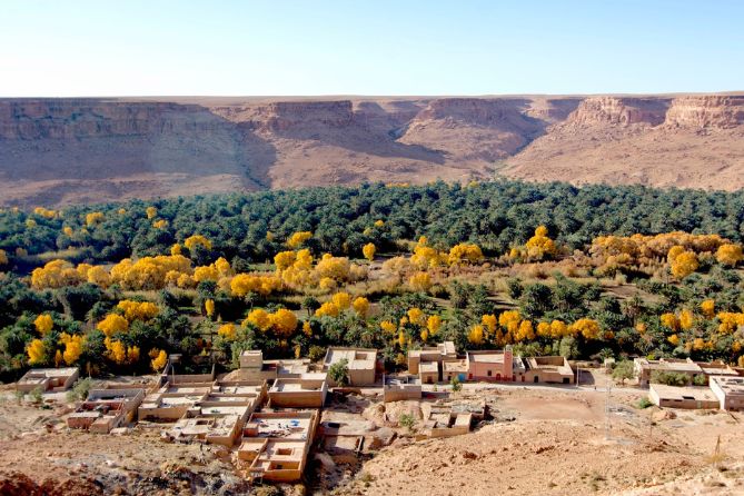 Wake up early to witness sunrise over the dunes. After breakfast and a refreshing shower back at the Merzouga hotel, drive through Rissani — home of Morocco’s ruling dynasty — and on to the spectacular Todra Gorges with their towering orange cliffs. Continue to the lush Dades Valley, a green oasis along the desert edge. Dinner and overnight in a 4-star hotel/guesthouse by the river. (Breakfast & dinner included.)